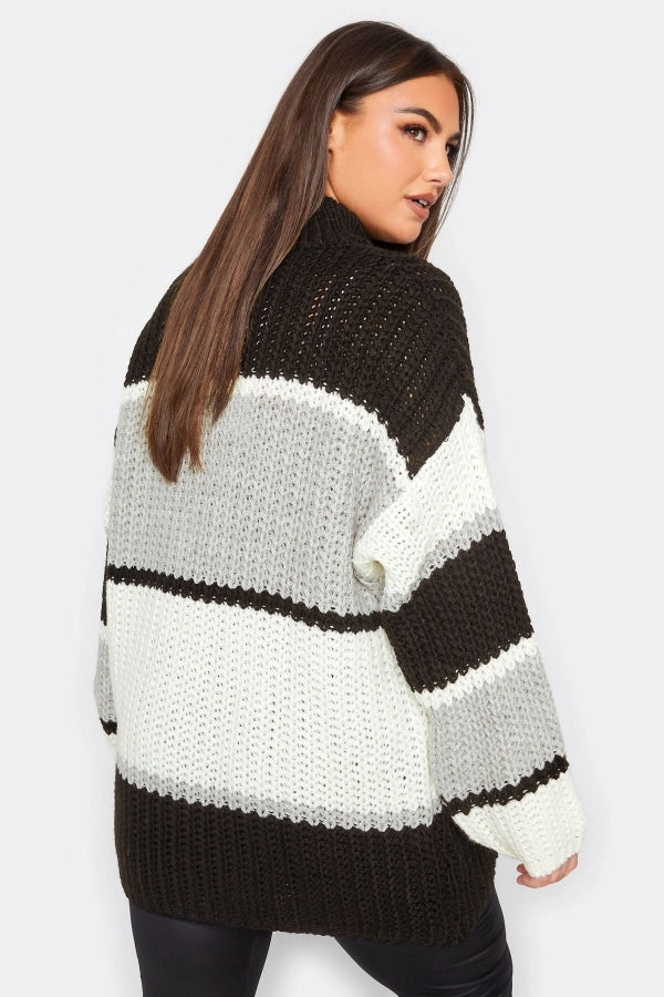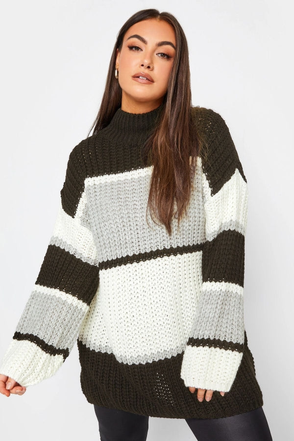 Büyük Beden Yarım Balıkçı Yaka Renk Bloklu Triko Örme Kazak 302329