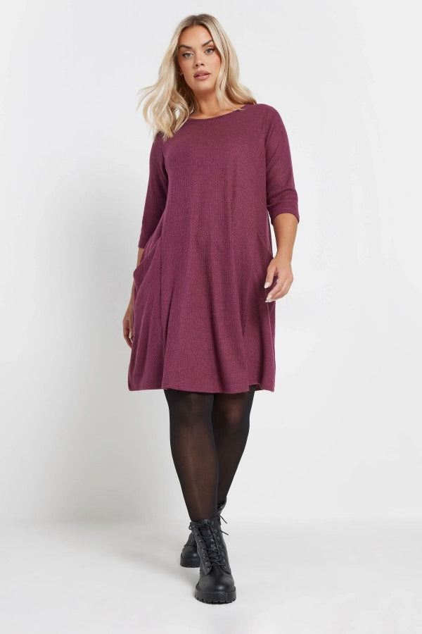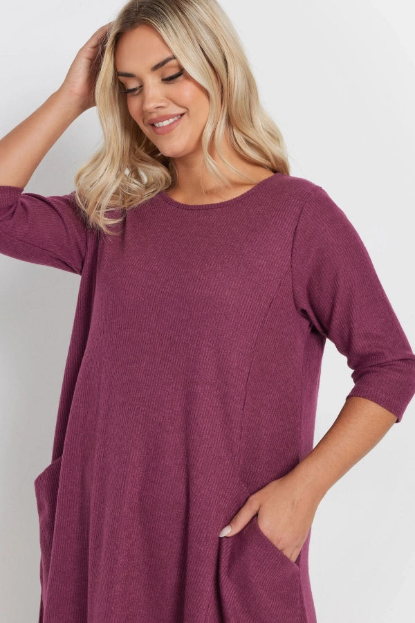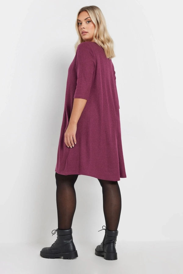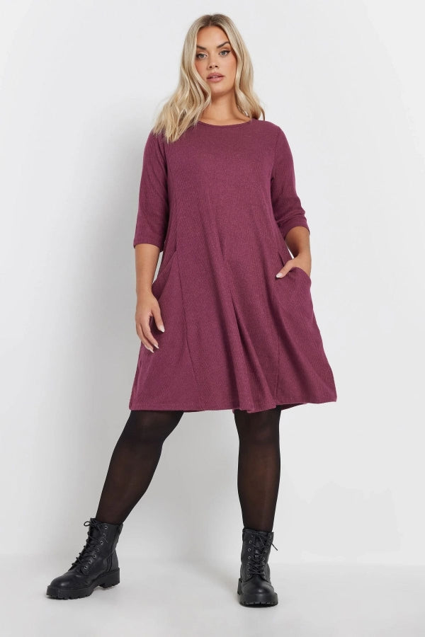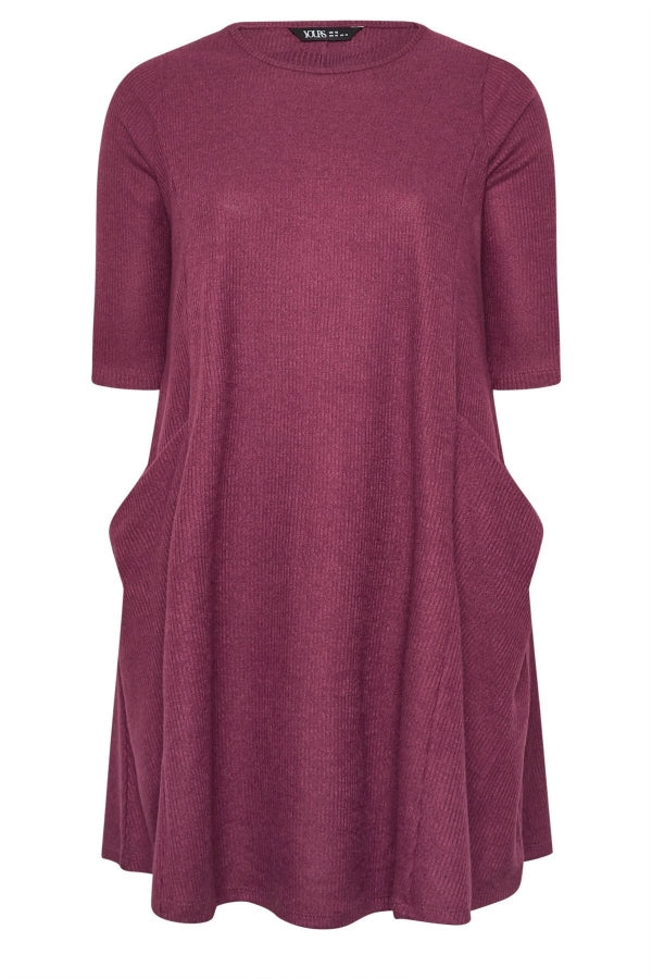 Büyük Beden Yarım Kollu Bisiklet Yaka Asimetrik Cepli Elbise 303803