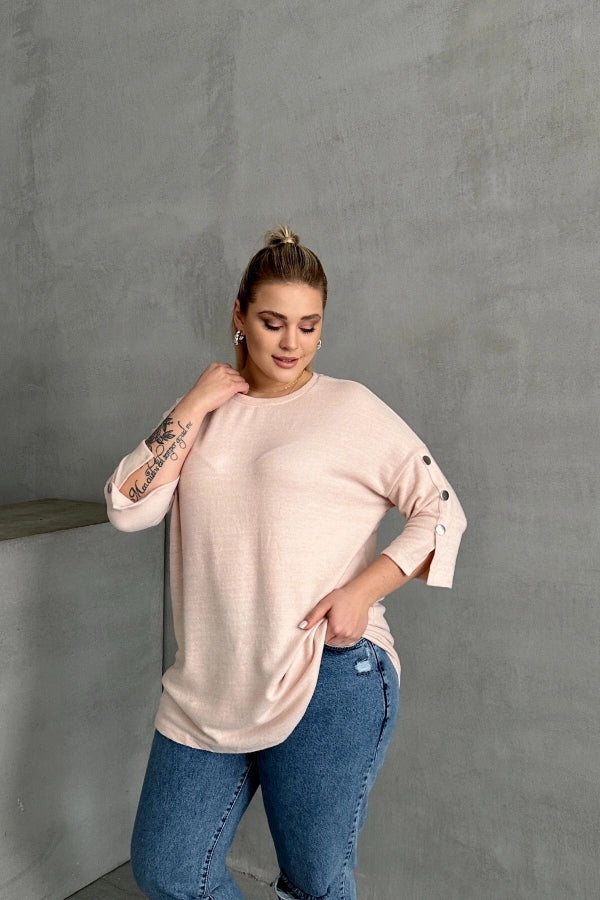 Büyük Beden Yarım Kollu Bisiklet Yaka Düğme Detaylı Kazak 303072