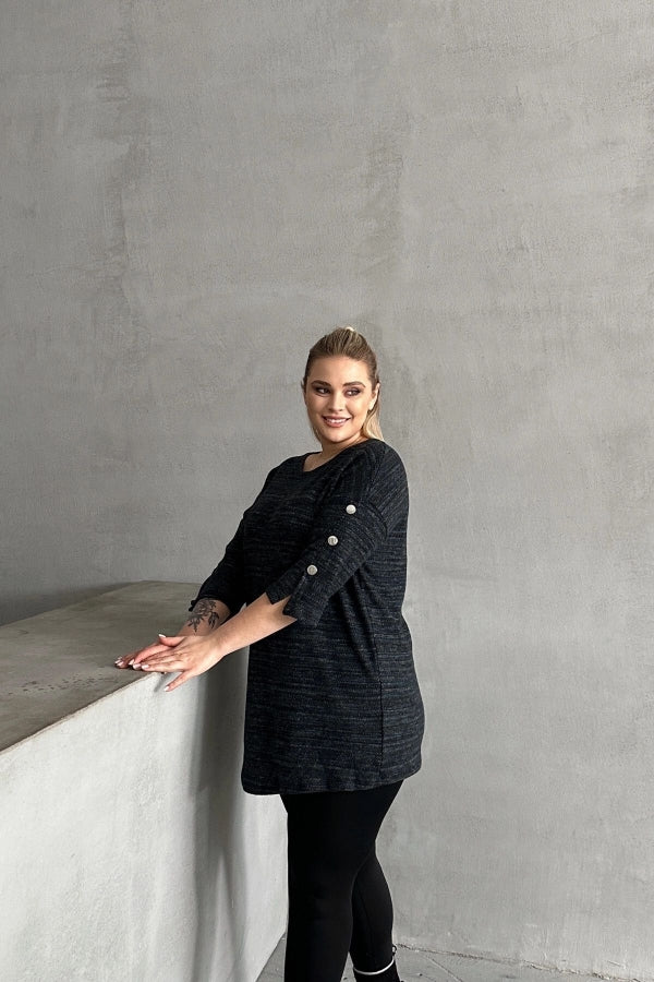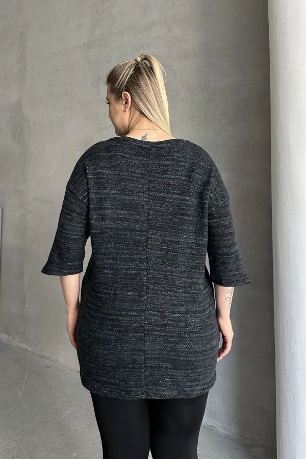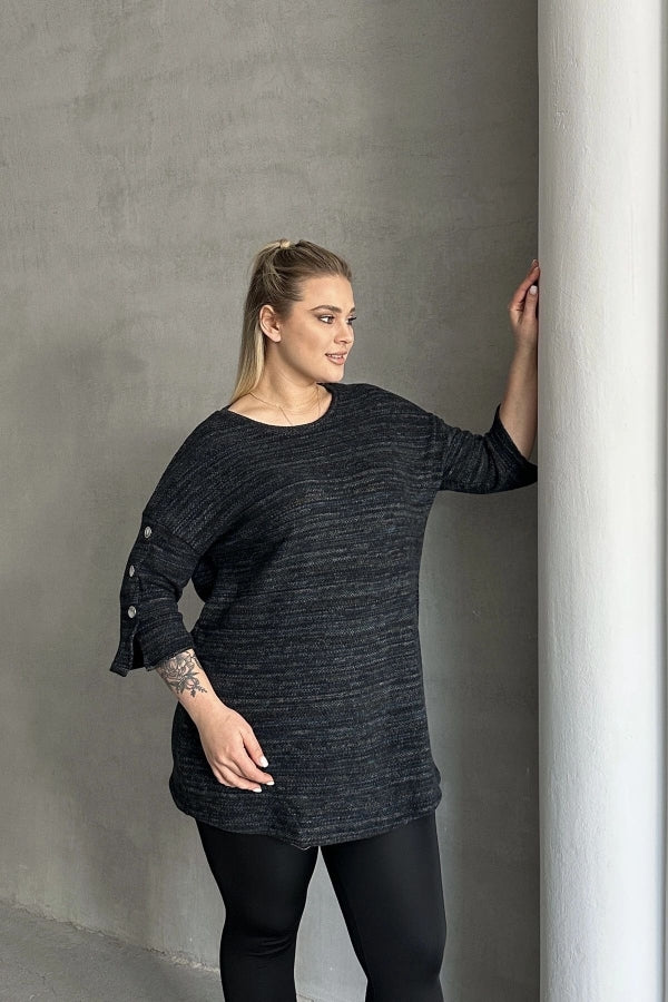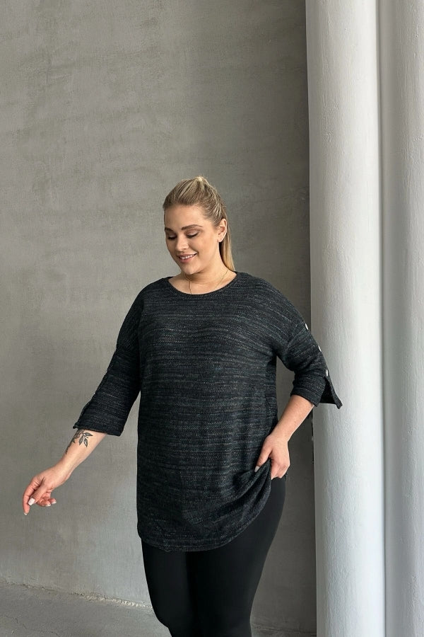 Büyük Beden Yarım Kollu Bisiklet Yaka Düğme Detaylı Kırçıllı Kazak 303691