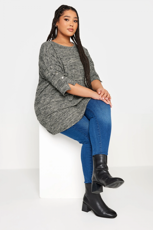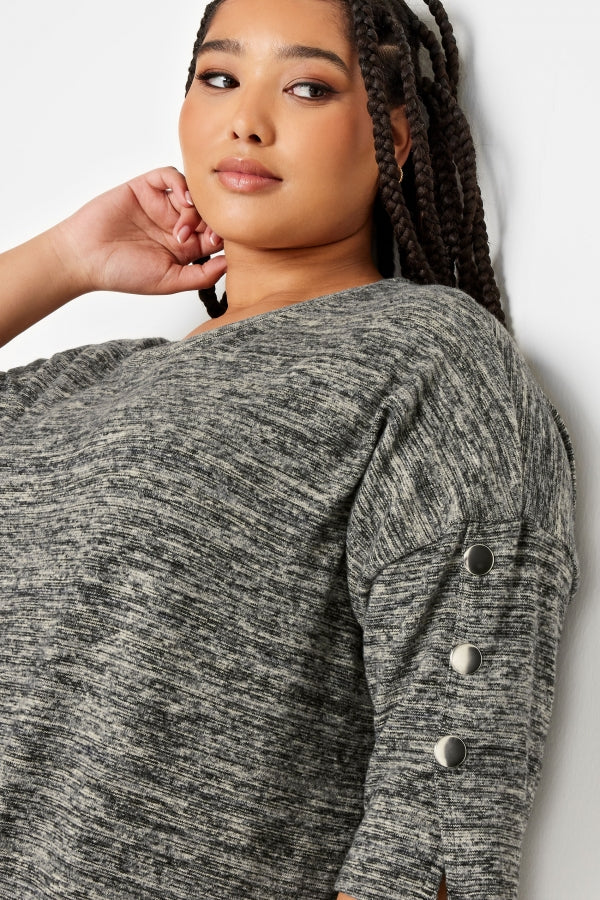 Büyük Beden Yarım Kollu Düğme Detaylı Yumuşak Dokulu Kazak 302987