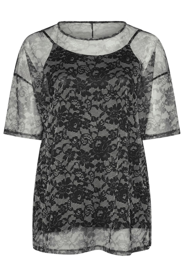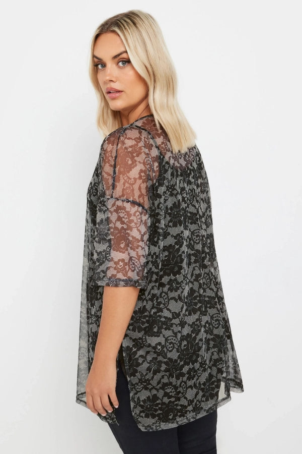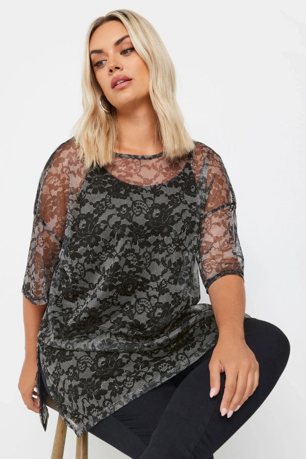 Büyük Beden Yarım Kollu İçi Astarlı Desenli Tül Bluz 303448