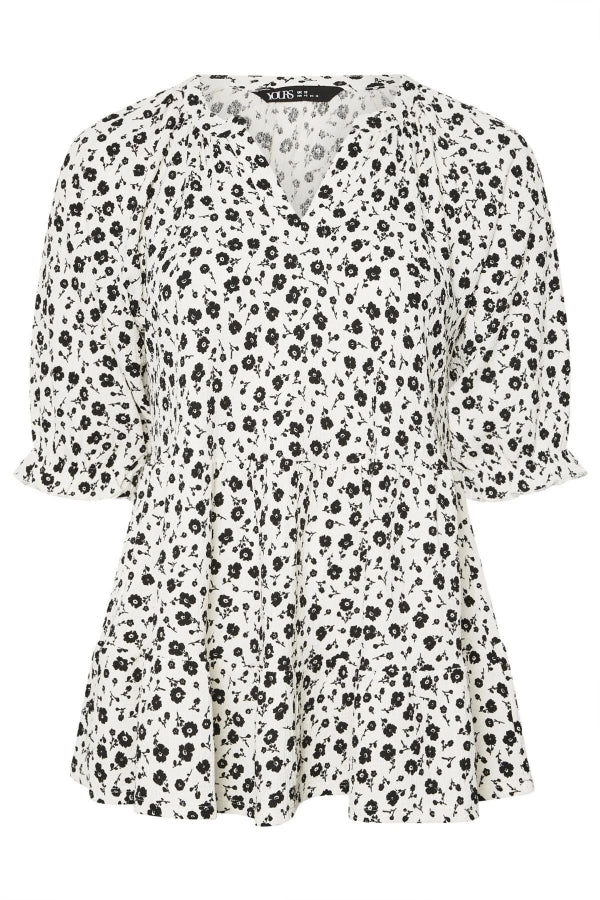 Büyük Beden Yarım Kollu V Yaka Eteği Fırfırlı Desenli Bluz 322572