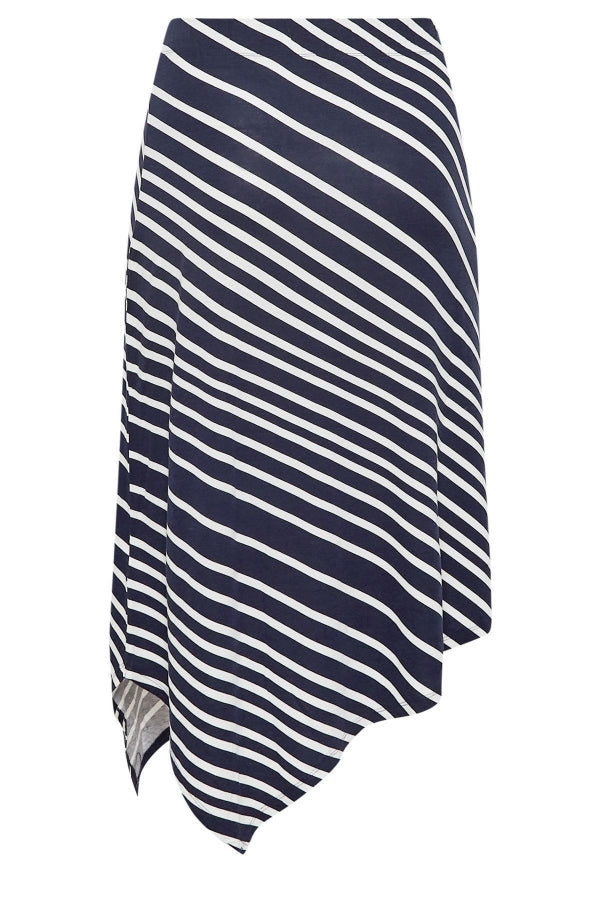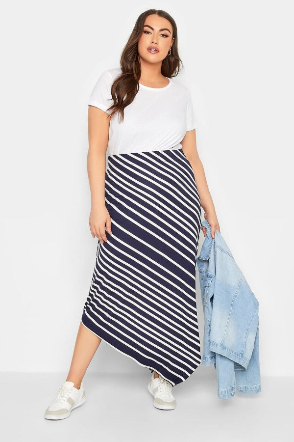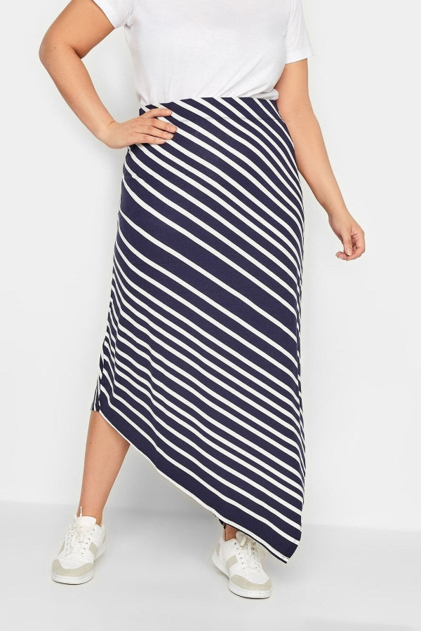 Büyük Beden Yatay Çizgili Beli Lastikli Midi Boy Asimetrik Kesim Etek 301629