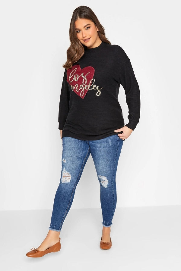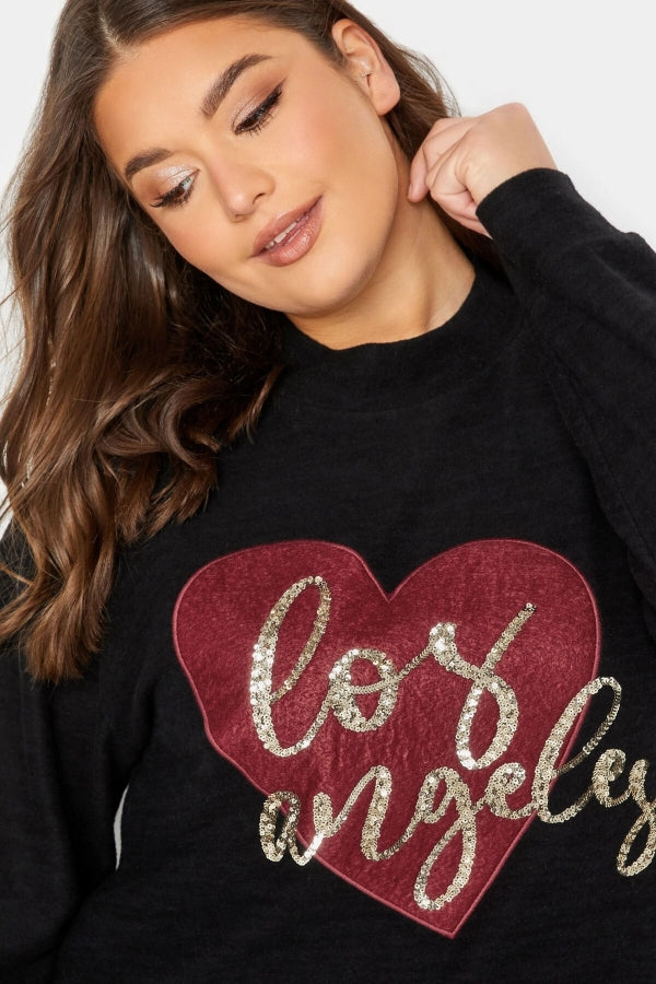 Büyük Beden Yazılı Payet Detaylı Yuvarlak Yaka Triko Kazak 301779