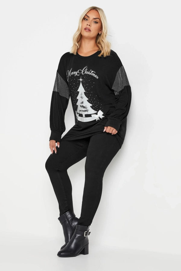 Büyük Beden Yılbaşı Temalı Bisiklet Yaka Uzun Balon Kollu Sweatshirt 285037