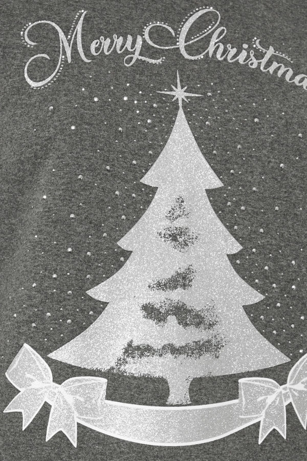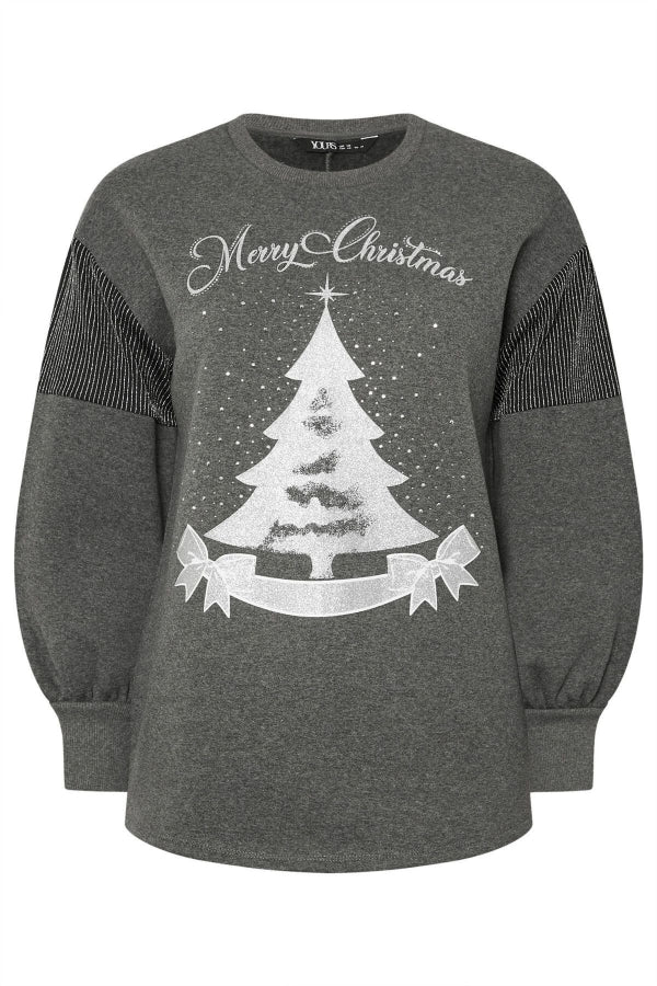 Büyük Beden Yılbaşı Temalı Bisiklet Yaka Uzun Balon Kollu Sweatshirt 303748