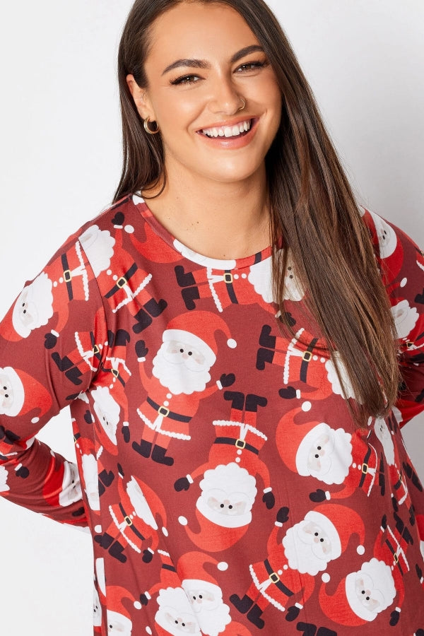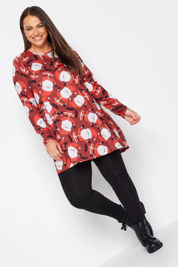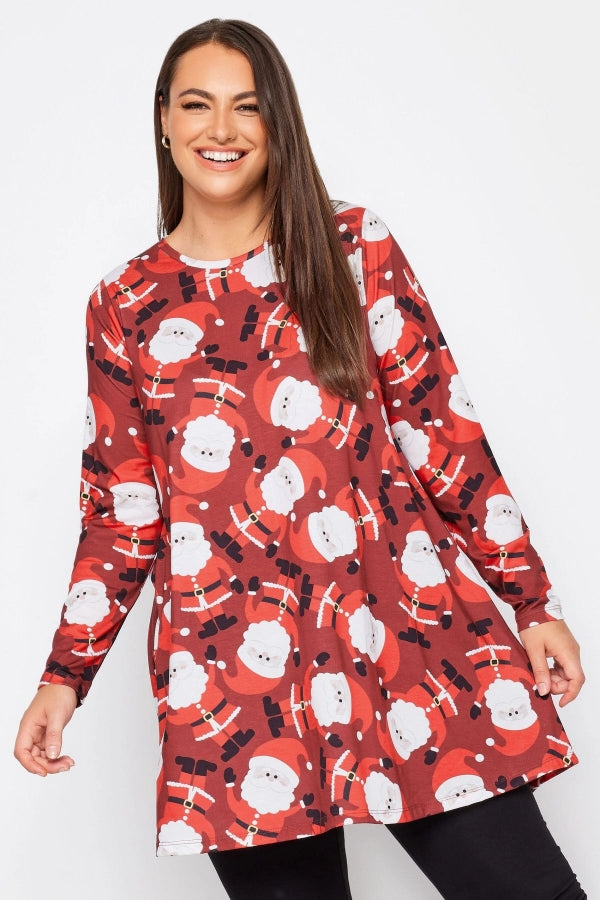 Büyük Beden Yılbaşı Temalı Bisiklet Yaka Uzun Kollu Uzun Kesim Bluz 321242
