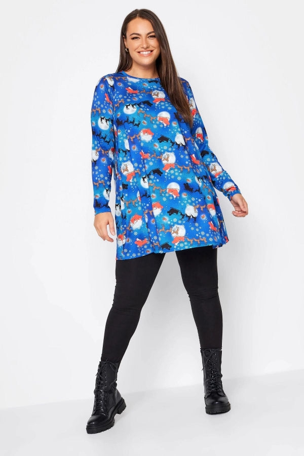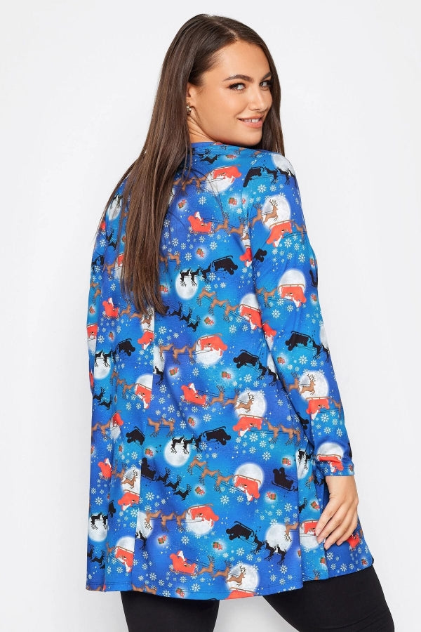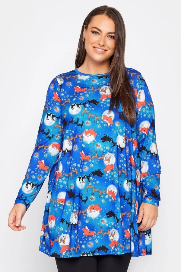 Büyük Beden Yılbaşı Temalı Bisiklet Yaka Uzun Kollu Uzun Kesim Bluz 321244