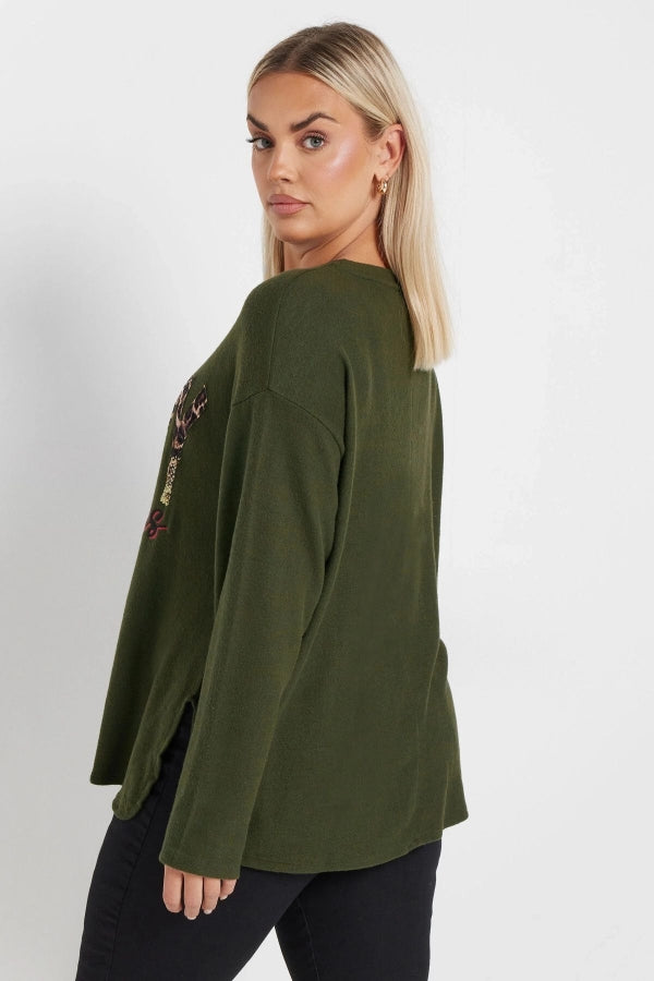 Büyük Beden Yılbaşı Temalı Bisiklet Yaka Uzun Kollu Yırtmaçlı Sweatshirt 303823
