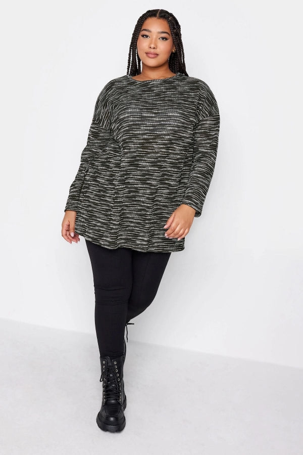 Büyük Beden Yırtmaç Detaylı Bisiklet Yaka Uzun Kollu Bluz 302606