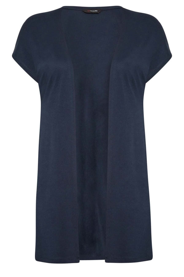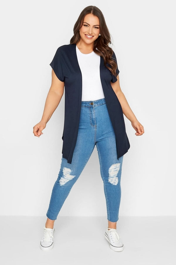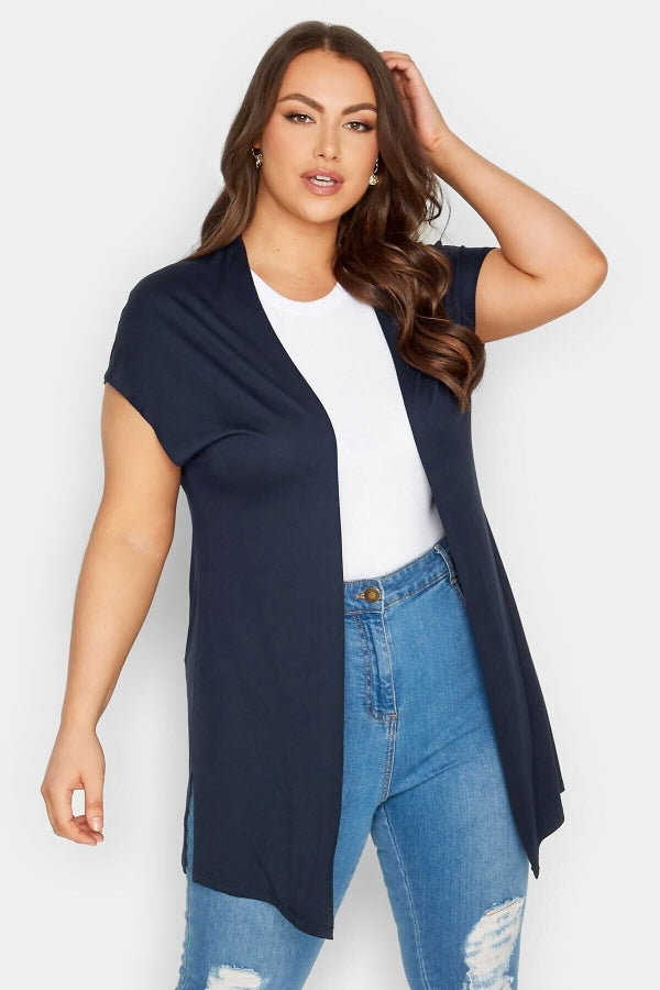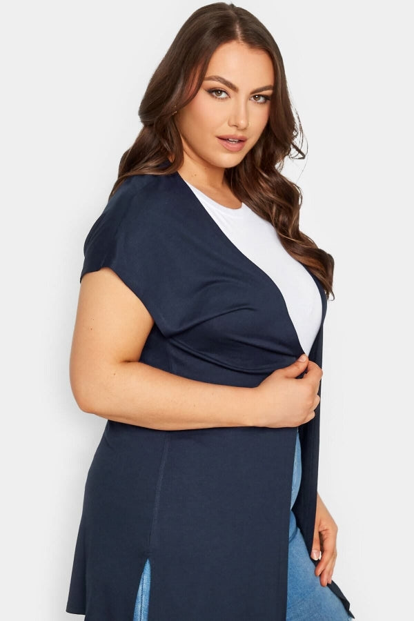Büyük Beden Yırtmaç Detaylı Düğmesiz Esnek Kumaş Kısa Kollu Hırka 320881