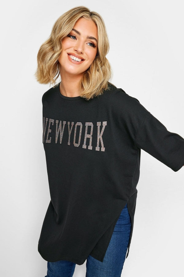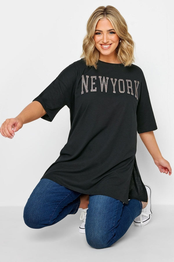 Büyük Beden Yırtmaç Detaylı Kabartma Detaylı Bisiklet Yaka Yarım Kollu T-shirt 302200