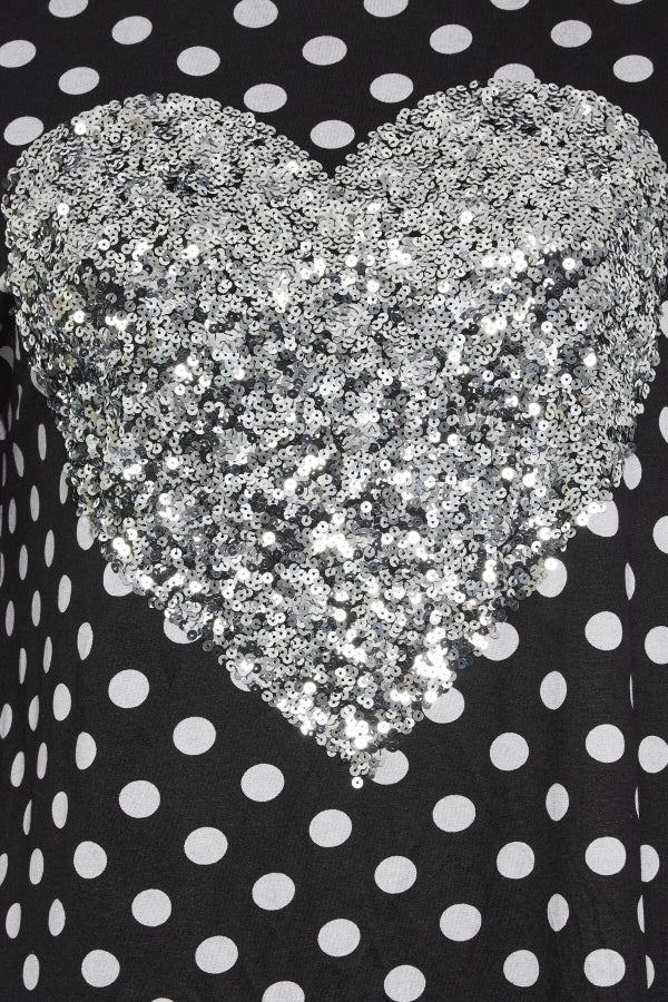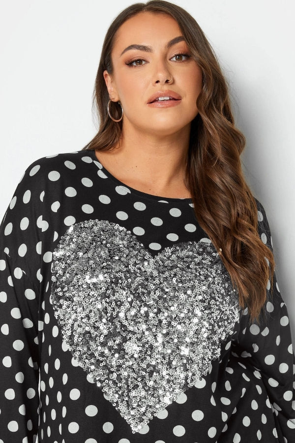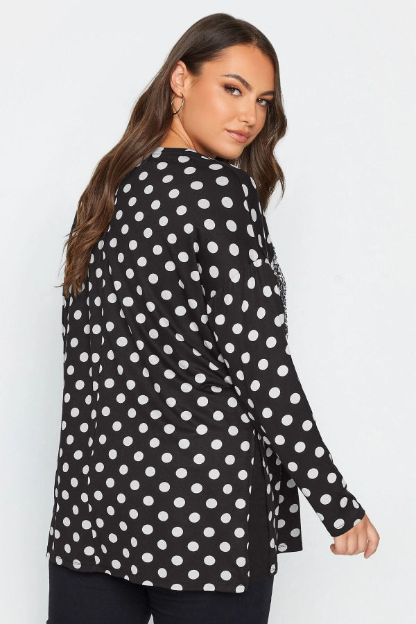 Büyük Beden Yırtmaç Detaylı Puantiyeli Payetli Uzun Kollu Bisiklet Yaka Bluz 302496