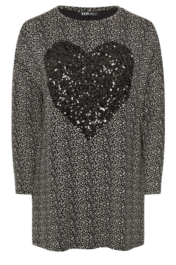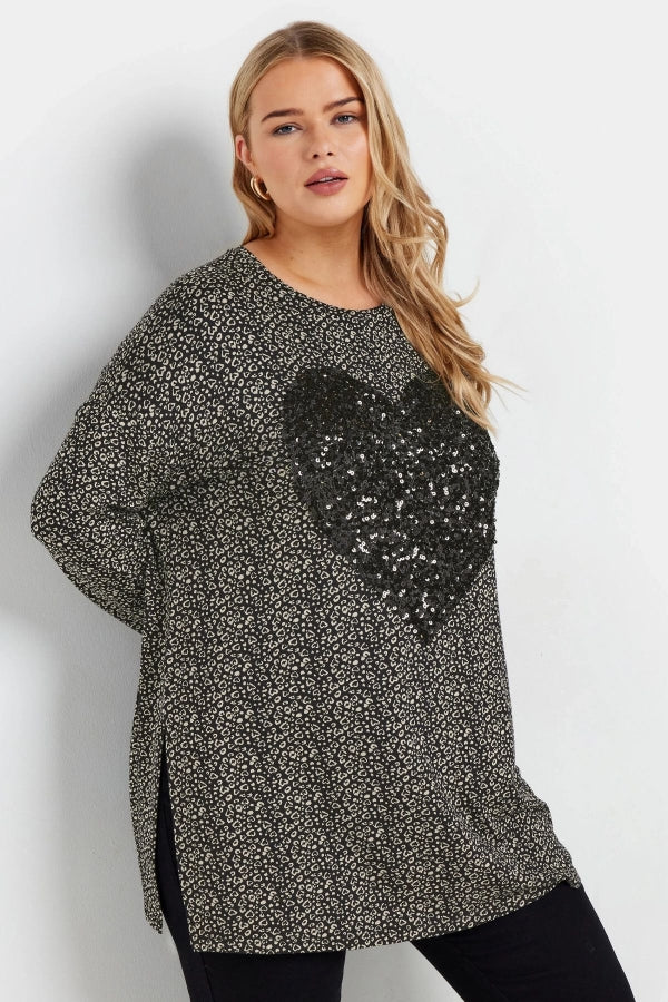 Büyük Beden Yırtmaç Detaylı Puantiyeli Payetli Uzun Kollu Bisiklet Yaka Bluz 322269