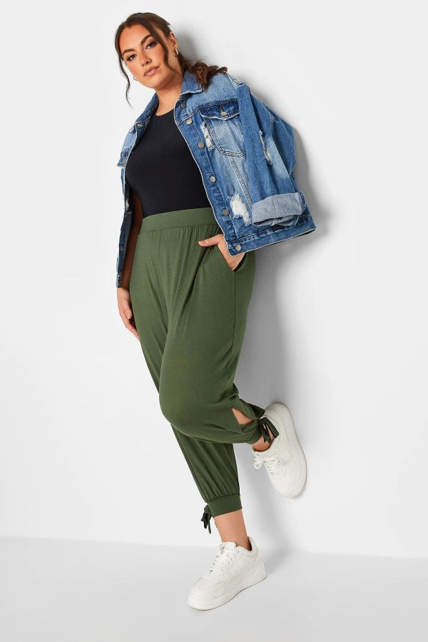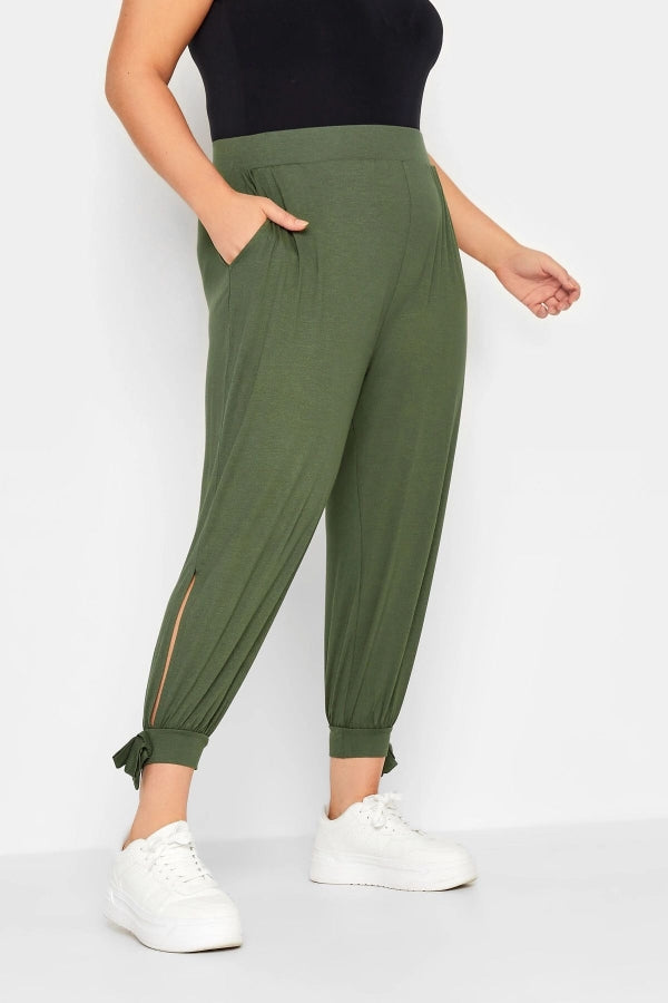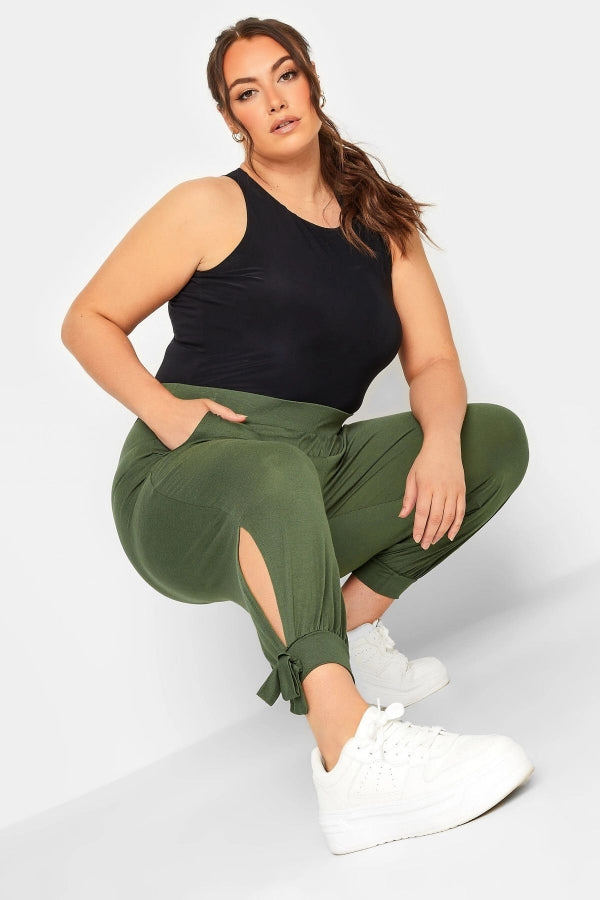 Büyük Beden Yırtmaçlı Paçası Lastikli Yırtmaç Detaylı Likralı Pantolon 144880