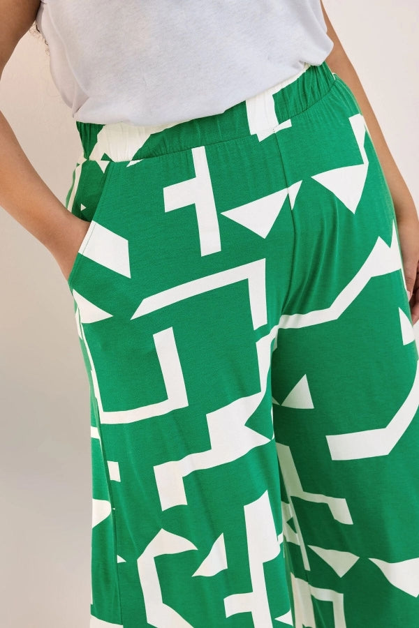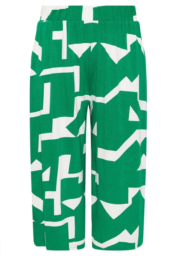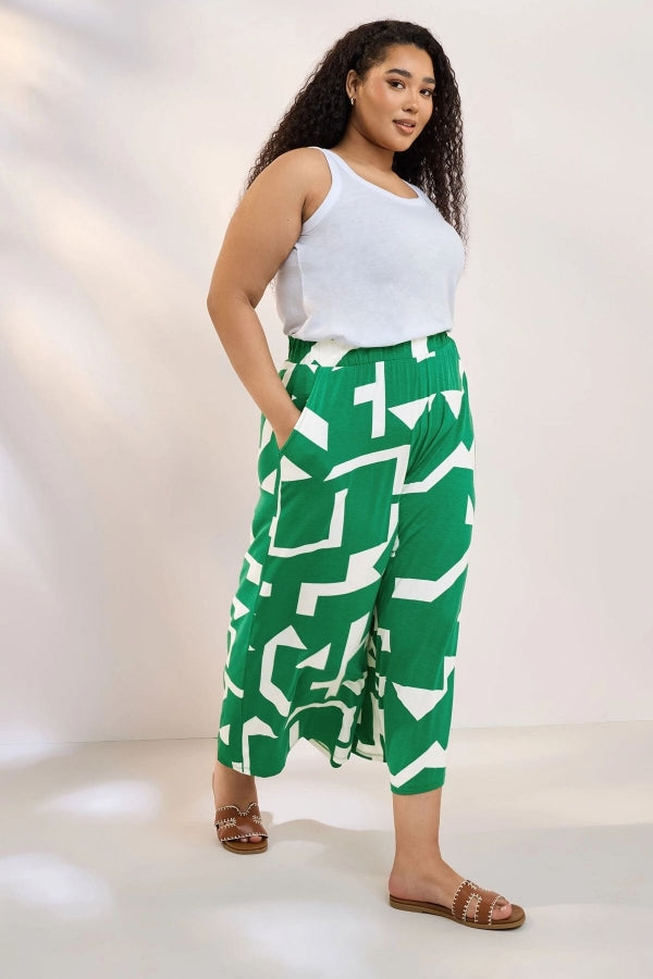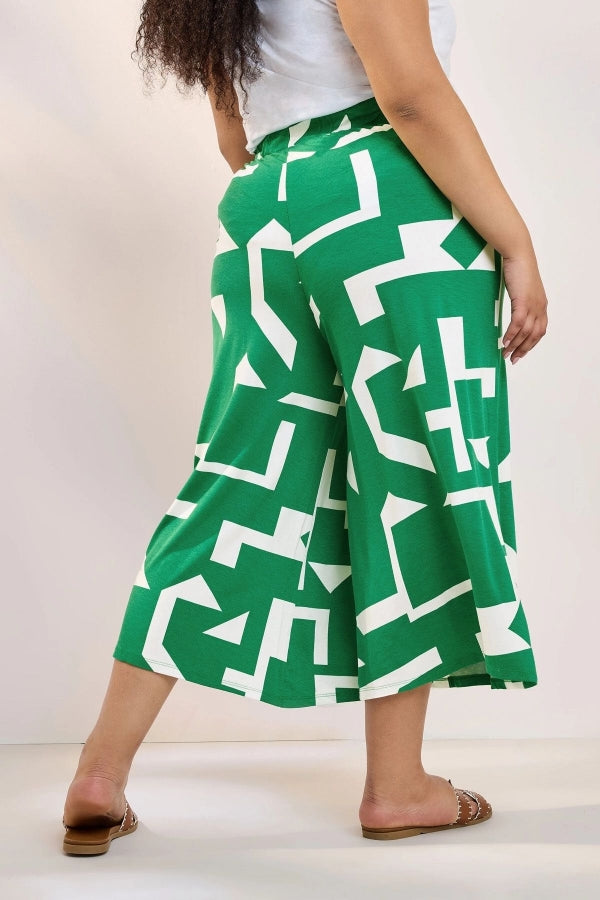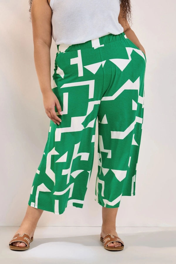 Büyük Beden Yüksek Bel Lastikli Cepli Bol Paça Kapri Pantolon 304118