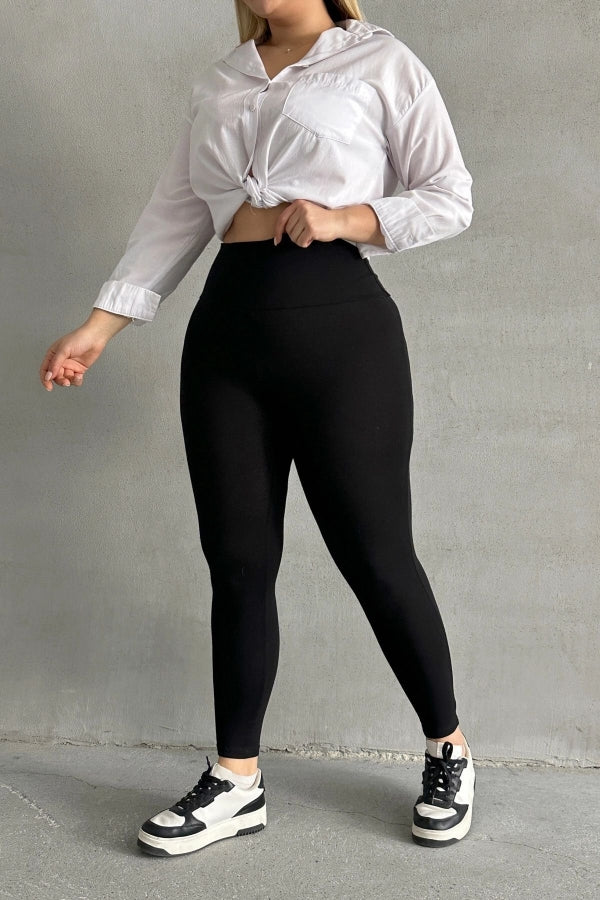 Büyük Beden Yüksel Bel Vücudu Saran Spor Tayt 038396