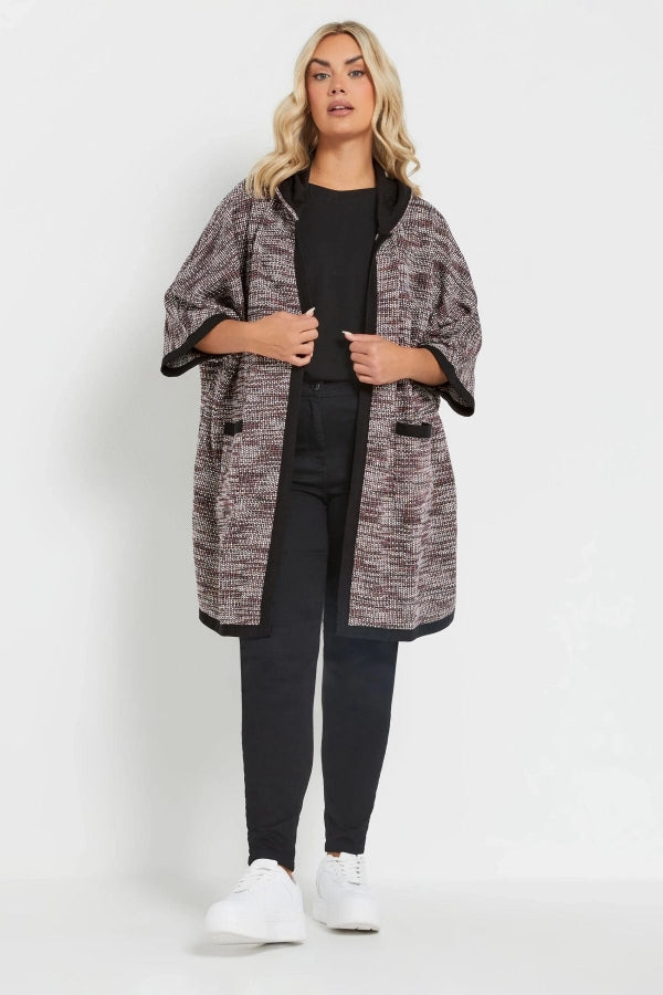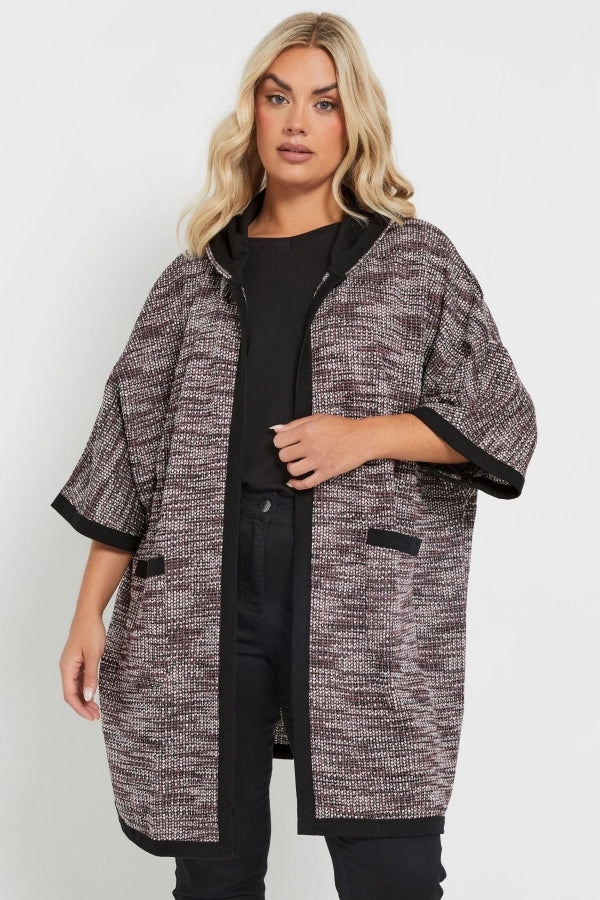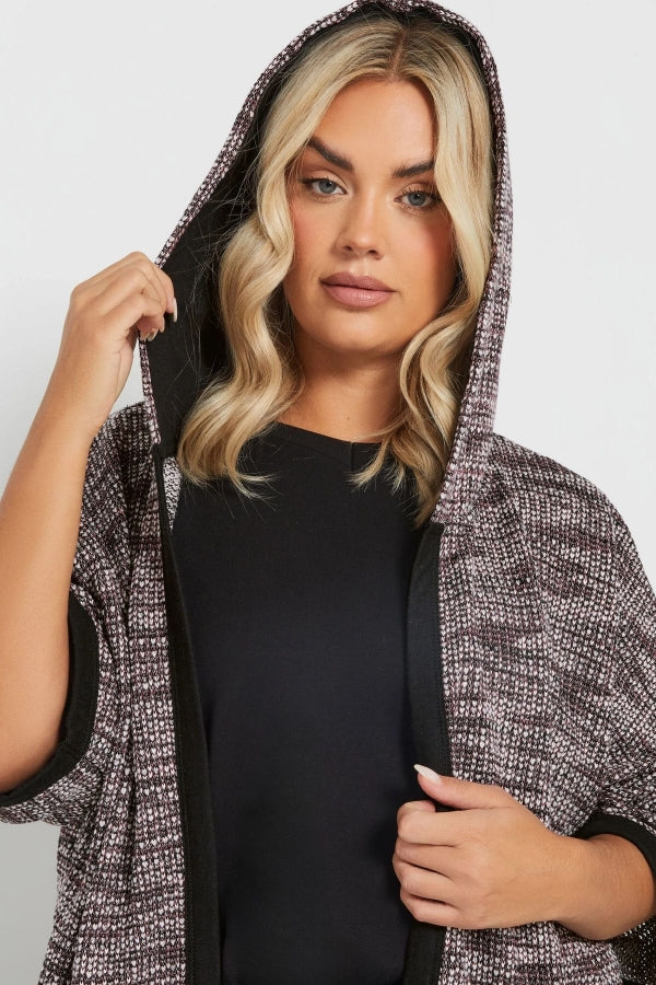 Büyük Beden Yumuşak Dokulu Yarım Kollu Cepli Kapüşonlu Hırka 301796