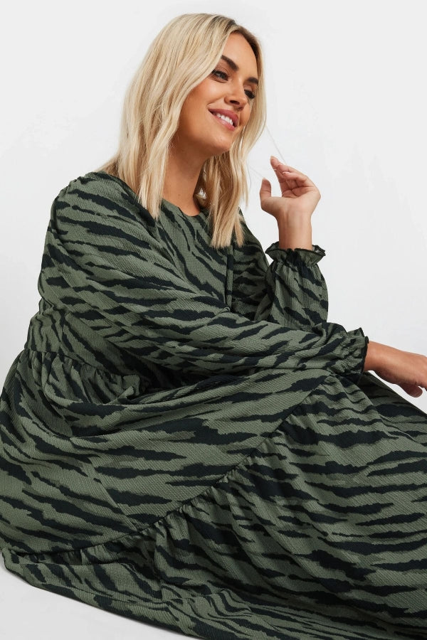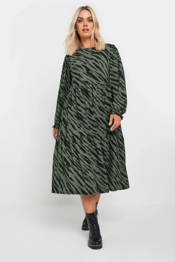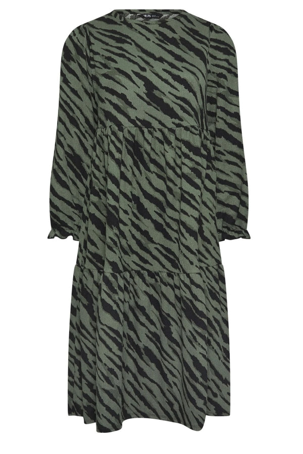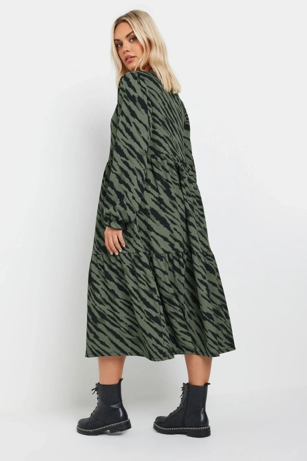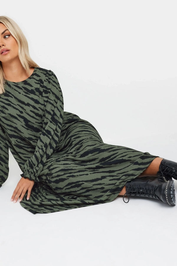 Büyük Beden Yumuşak Dokulu Zebra Desenli Balon Kol Elbise 270015