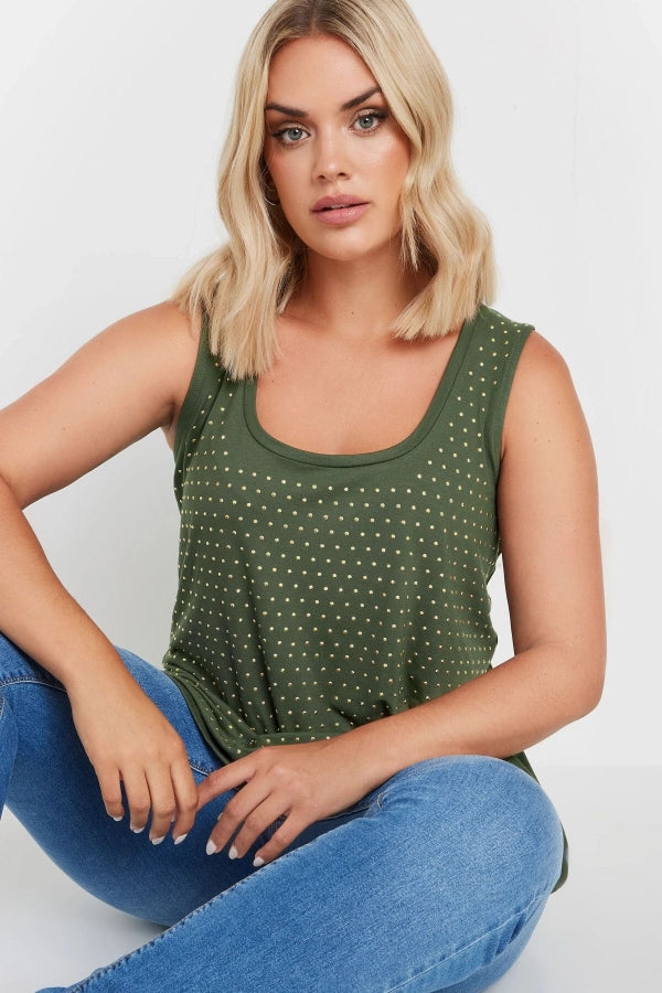 Büyük Beden Yuvarlak Yaka Sıfır Kol Zımba Detaylı Bluz 321832