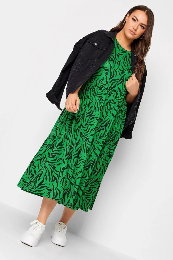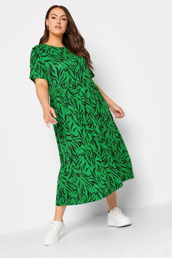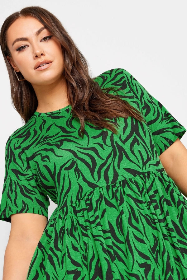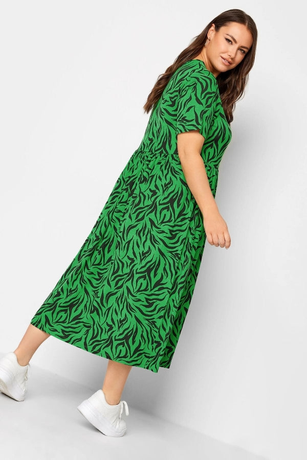 Büyük Beden Zebra Desenli Bisiklet Yaka Kısa Kollu Elbise 137593