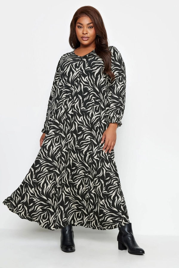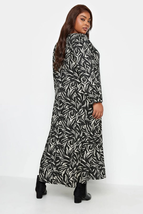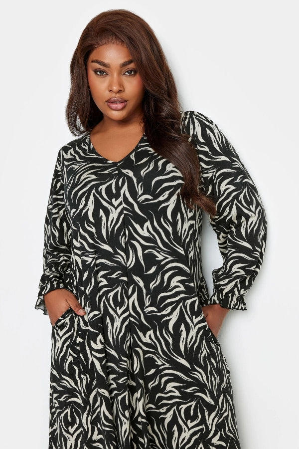 Büyük Beden Zebra Desenli Uzun Kollu Cepli V Yaka Uzun Elbise 137669