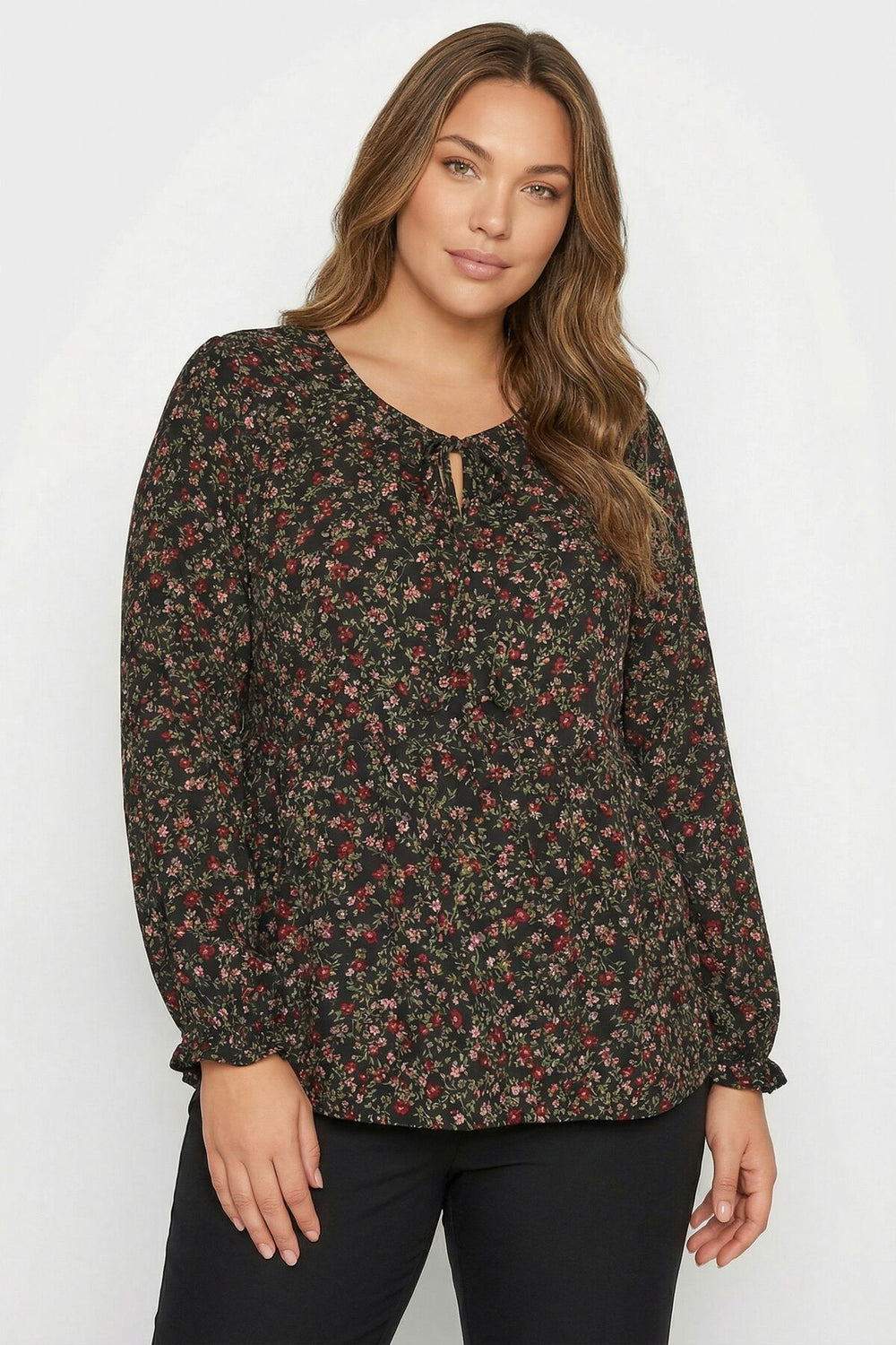 Vervegrand'ın büyük beden koleksiyonuna ait bu şık siyah elbise, ip bağlamalı yakası ve zarif çiçek deseniyle dikkat çekiyor. Hem özel günlerde hem de günlük kullanımda rahatlıkla tercih edebileceğiniz bu elbise, büyük beden kalıbıyla konforlu bir kullanım sunar. Gardırobunuzun vazgeçilmezi olacak bu trend parçayı kaçırmayın!